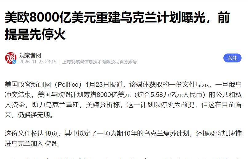条件很苛刻,但筹码也特别醒目,欧盟出资8000亿美元帮助乌克兰重建,堪称现代版“马歇尔计划”。