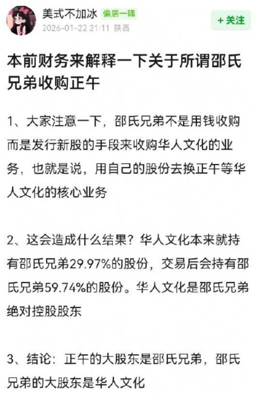 以上是香港邵氏收购正午阳光的财务新闻的节选。这酸涩难懂的财务新闻看得本宝头痛,尝试给大家翻译就是——香港邵氏通过发行新股的方式收购了正午阳光,自此将占正午阳光50%的股份。其实,邵氏本身属于华人文化控股,也就是说通过一些交易手段,华人文化对邵氏和正午阳光都实现了控股。简单点来说,就是正午阳光没钱了。给自己叠甲:本宝的财务知识为0,只是就着别人的解析和瓜主的爆料进行再解读。本宝只是一个娱乐方面的自媒体,带大家吃瓜才是正事。