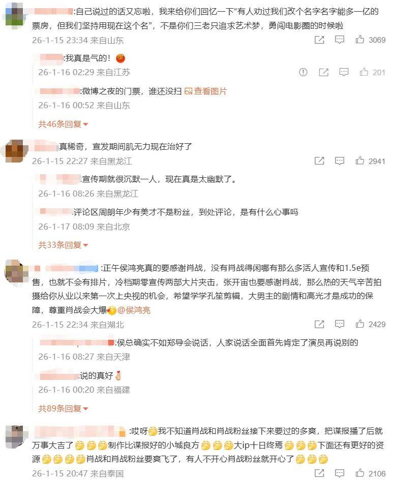 这就与肖战粉丝对外宣传《得闲谨制》是小成本文艺片相矛盾了,加上电影“零宣发”导致票房没有办法冲得更高,肖战粉丝觉得被侯鸿亮背刺了,非常生气,因此侯鸿亮的微博评论区全是肖战粉丝的“问候”。